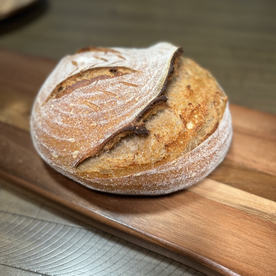 A sweeter take on the classic sourdough, the cinnamon raisin loaf has a reputation for satisfying your "sweet tooth" cravings. Slicing into this loaf leaves a subtle marbling of cinnamon-sugar that will not disappoint. This loaf stands on its own as a small meal or snack and satisfies hunger to power you through your busy day!
